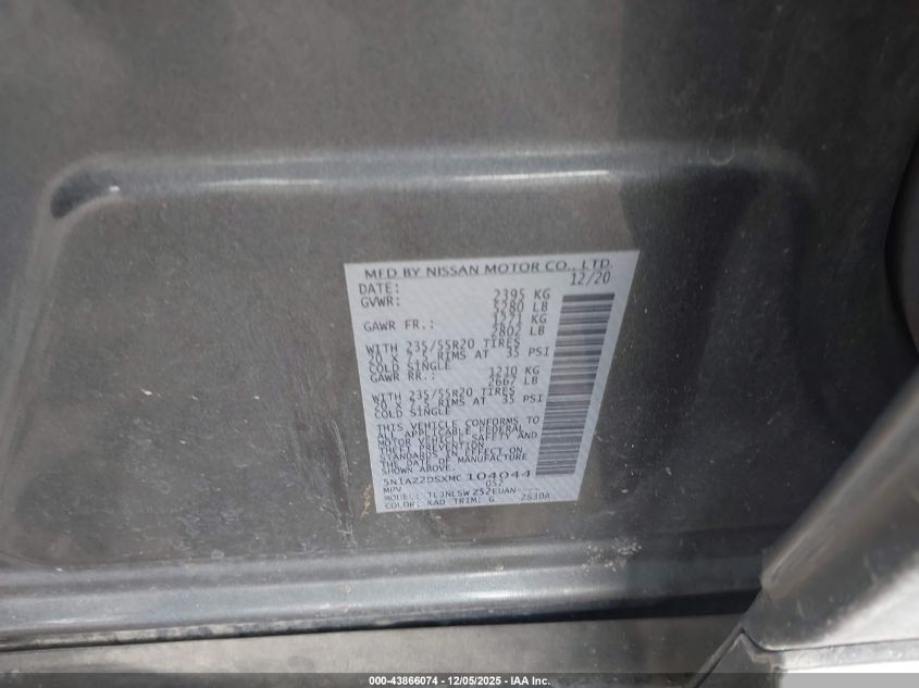 2021 NISSAN MURANO 2021 року Бензин, 3.5, Повний привід, vin - 5N1AZ2DSXMC104044 з США