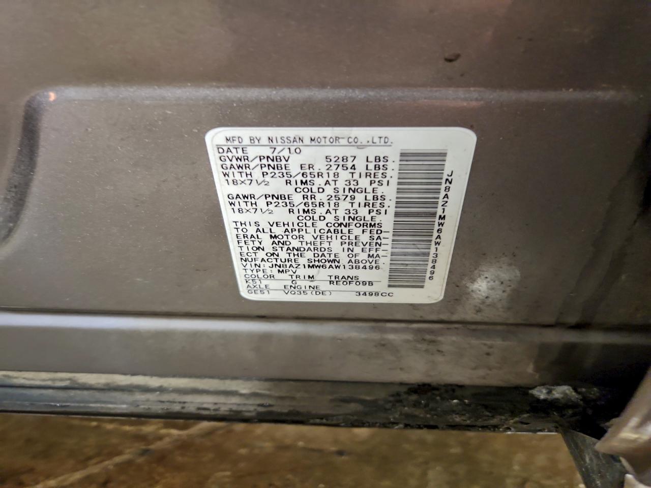 2010 NISSAN MURANO 2010 року Бензин, 3.5, Повний привід, vin - JN8AZ1MW6AW138496 з США