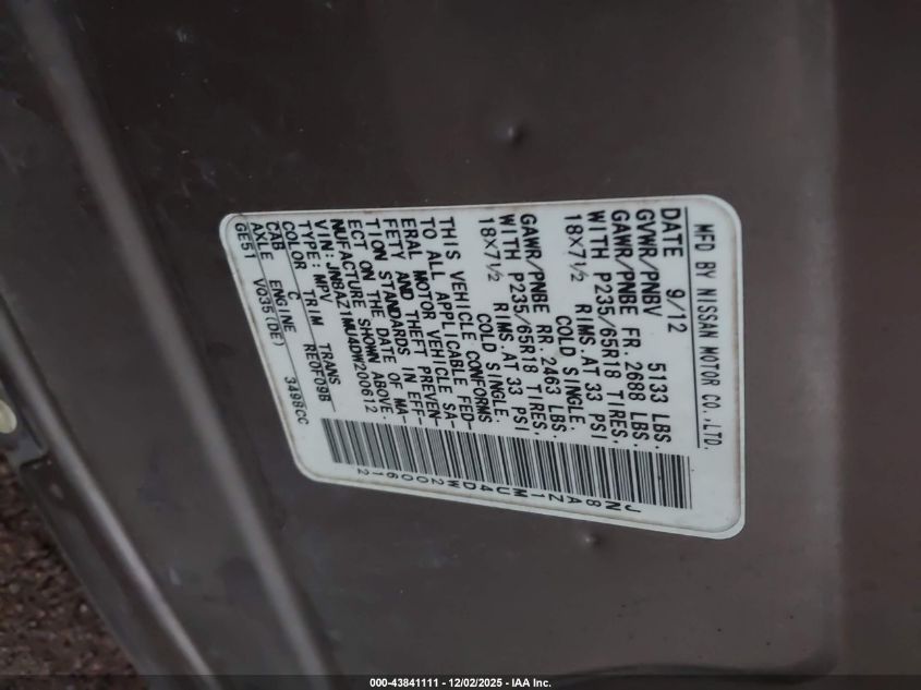 2013 NISSAN MURANO 2013 року Бензин, 3.5, Передній привід, vin - JN8AZ1MU4DW200612 з США