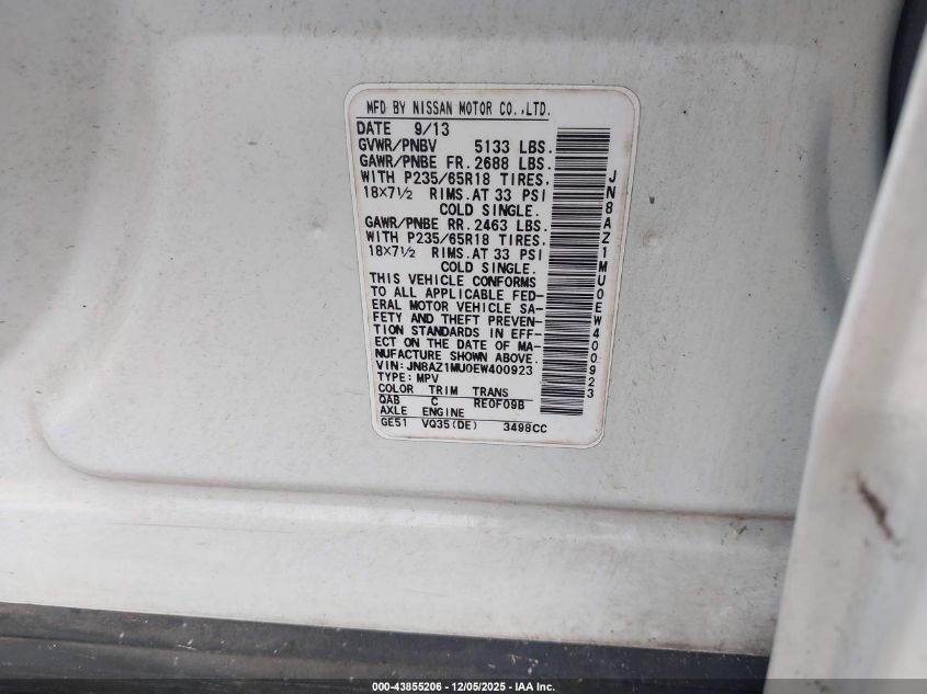 2014 NISSAN MURANO 2014 року Бензин, 3.5, Передній привід, vin - JN8AZ1MU0EW400923 з США
