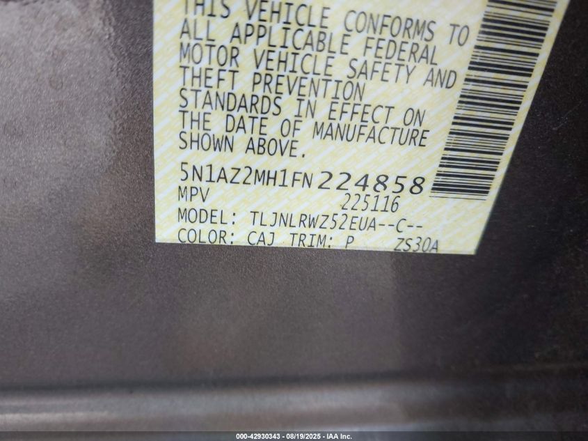 2015 NISSAN MURANO 2015 року Бензин, 3.5, Повний привід, vin - 5N1AZ2MH1FN224858 з США