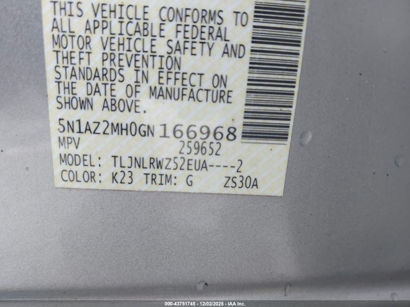 2016 NISSAN MURANO 2016 року Бензин, 3.5, Повний привід, vin - 5N1AZ2MH0GN166968 з США
