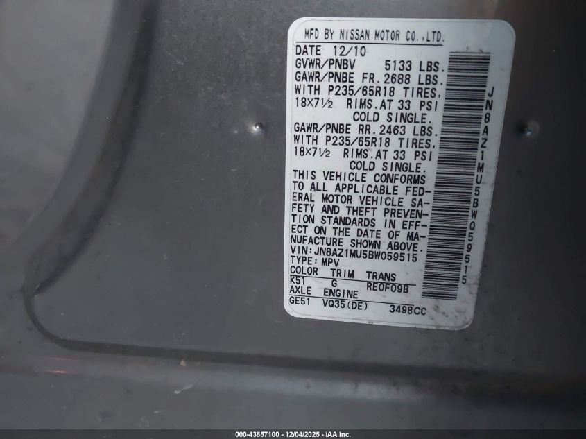 2011 NISSAN MURANO S
