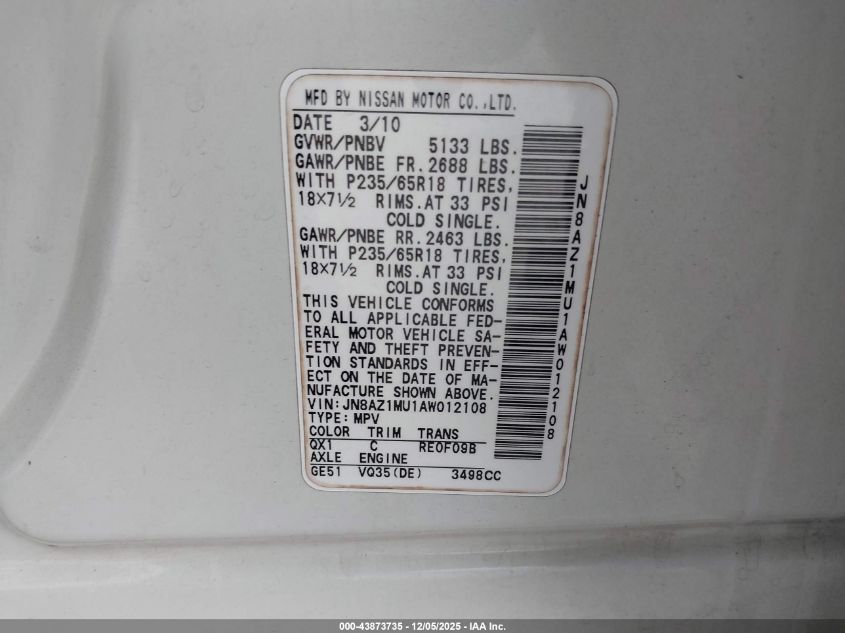 2010 NISSAN MURANO S