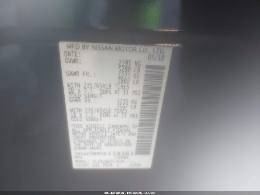 2018 NISSAN MURANO 2018 року Бензин, 3.5, Повний привід, vin - 5N1AZ2MH9JN159363 з США