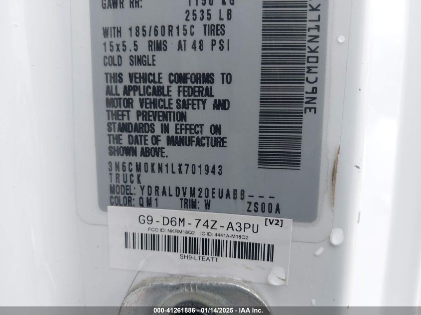 2020 NISSAN NV200 2020 року Бензин, 2.0, Передній привід, vin - 3N6CM0KN1LK701943 з США