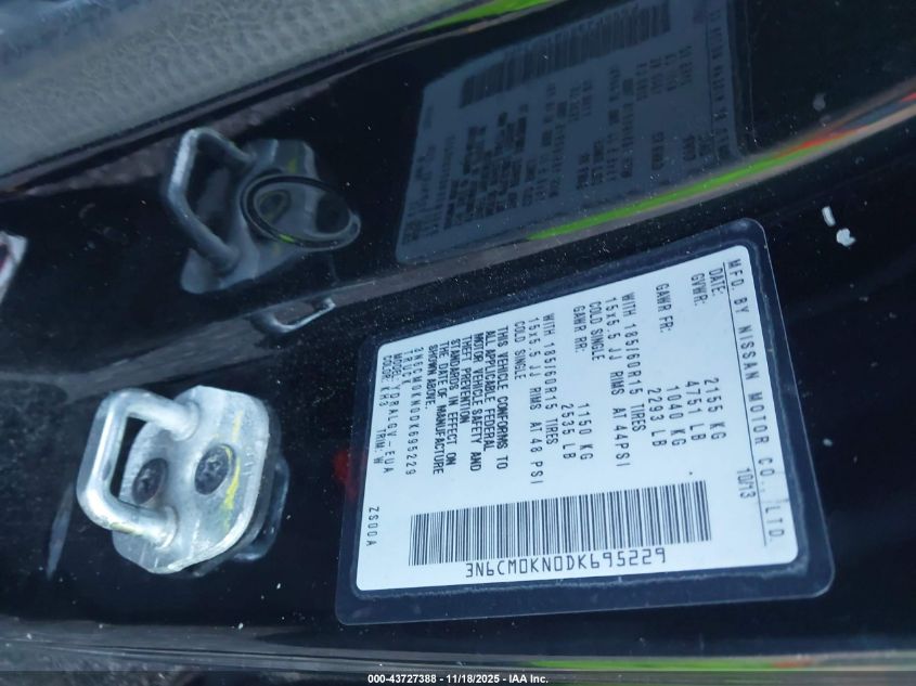 2013 NISSAN NV200 2013 року Бензин, 2.0, Передній привід, vin - 3N6CM0KN0DK695229 з США