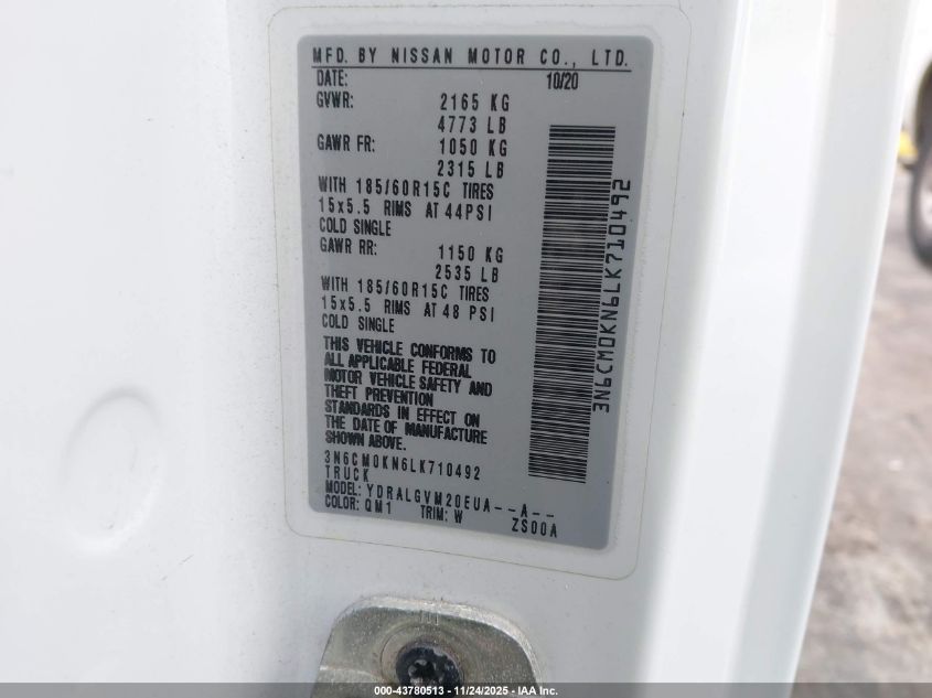 2020 NISSAN NV200 2020 року Бензин, 2.0, Передній привід, vin - 3N6CM0KN6LK710492 з США