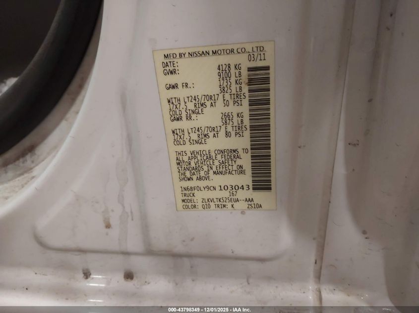 2012 NISSAN NV2500 2012 року Бензин, 4.0, Задній привід, vin - 1N6BF0LY9CN103043 з США