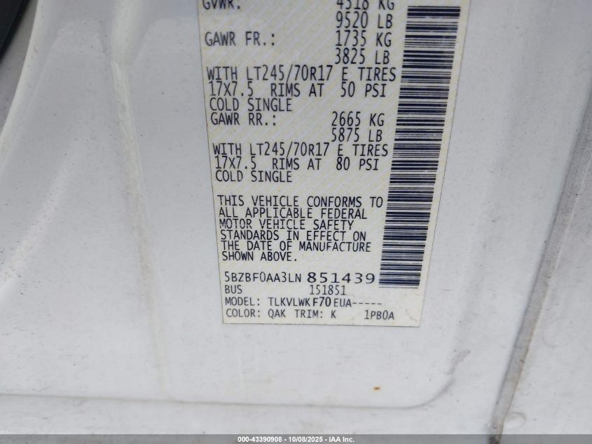 Колір БілийЦиліндри 6Привід Задній привідVIN 5BZBF0AA3LN851439Стан Заводиться та їде (перевірено)Ушкодження Передня або задня