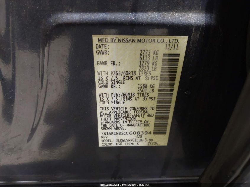 2012 NISSAN PATHFINDER 2012 року Бензин, 4.0, Повний привід, vin - 5N1AR1NB5CC608394 з США
