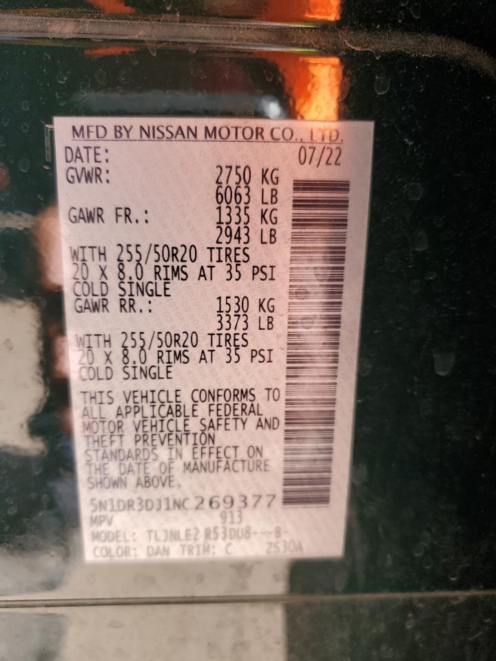 2022 NISSAN PATHFINDER 2022 року Бензин, 3.5, 4x4 з переднім приводом, vin - 5N1DR3DJ1NC269377 з США