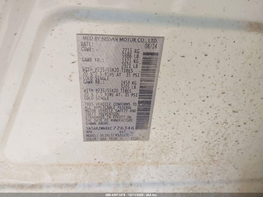 2014 NISSAN PATHFINDER 2014 року Бензин, 3.5, Передній привід, vin - 5N1AR2MN8EC726346 з США