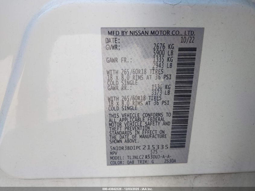 2023 NISSAN PATHFINDER 2023 року Бензин, 3.5, Повний привід, vin - 5N1DR3BD1PC215335 з США