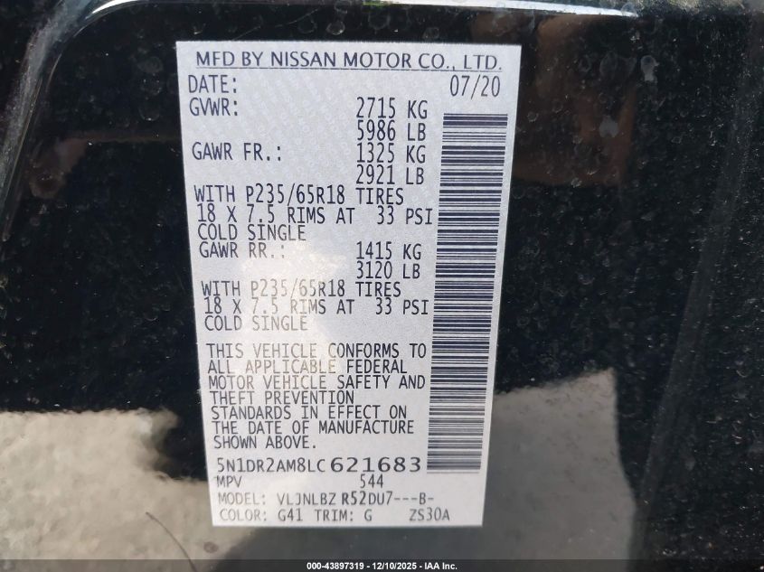 2020 NISSAN PATHFINDER 2020 року Бензин, 3.5, Повний привід, vin - 5N1DR2AM8LC621683 з США