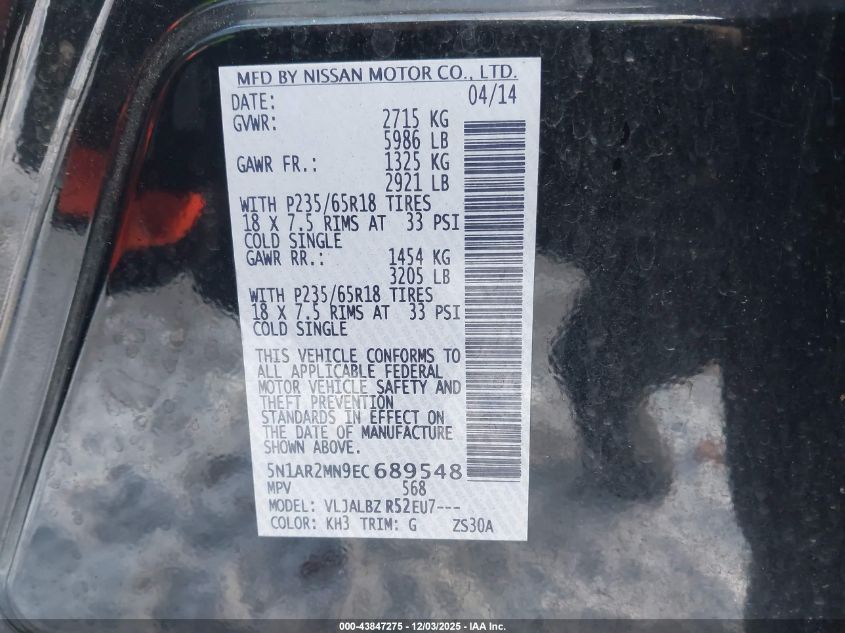 2014 NISSAN PATHFINDER 2014 року Бензин, 3.5, Передній привід, vin - 5N1AR2MN9EC689548 з США