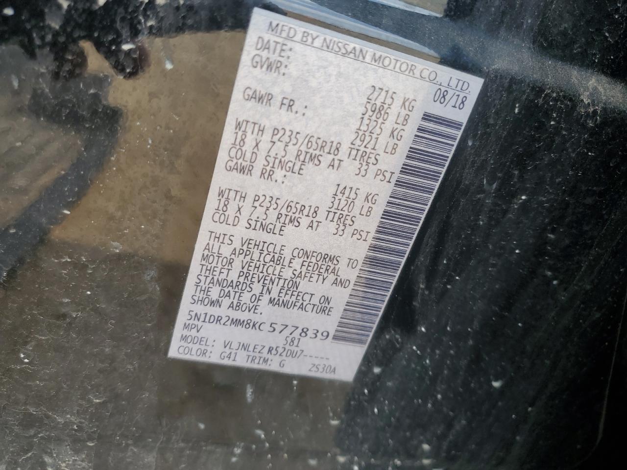 Колір ЧорнийЦиліндри 6Привід 4x4 з переднім приводомVIN 5N1DR2MM8KC577839Стан Заводиться та їде (перевірено)Ушкодження Задня AutoRIA