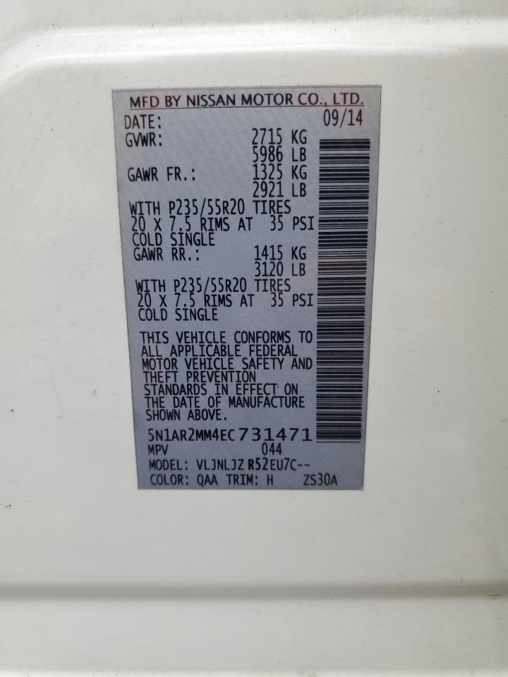 2014 NISSAN PATHFINDER 2014 року Бензин, 3.5, 4x4 з переднім приводом, vin - 5N1AR2MM4EC731471 з США