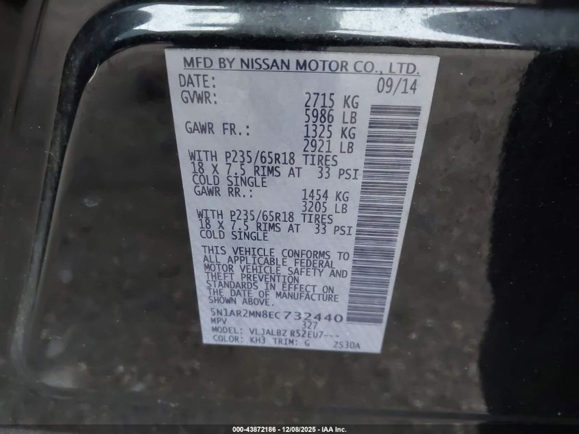 2014 NISSAN PATHFINDER 2014 року Бензин, 3.5, Передній привід, vin - 5N1AR2MN8EC732440 з США