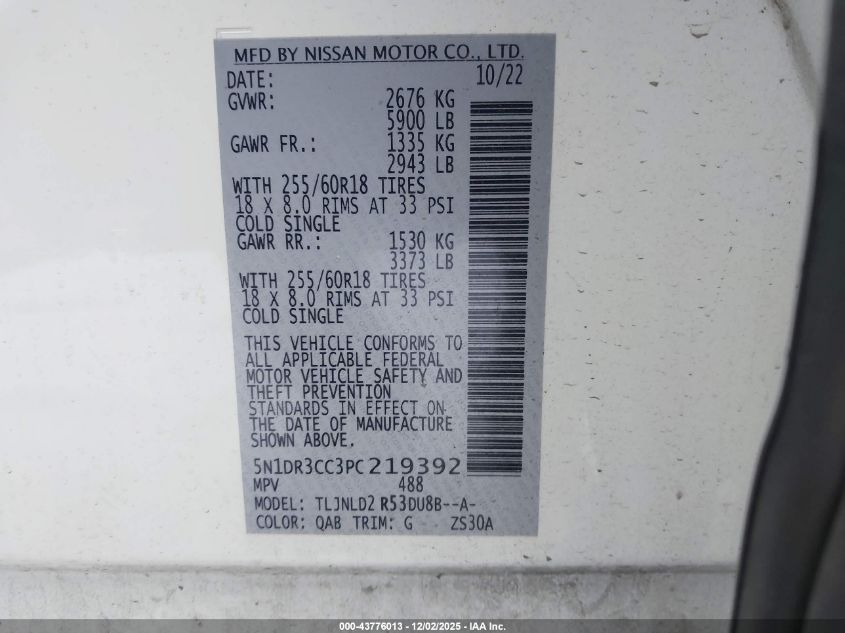 2023 NISSAN PATHFINDER 2023 року Бензин, 3.5, Повний привід, vin - 5N1DR3CC3PC219392 з США
