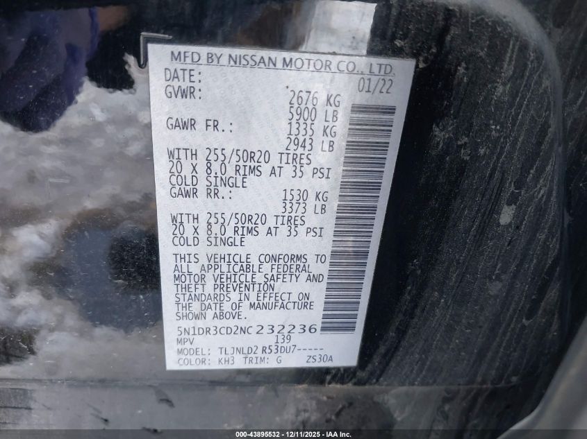 2022 NISSAN PATHFINDER 2022 року Бензин, 3.5, Повний привід, vin - 5N1DR3CD2NC232236 з США