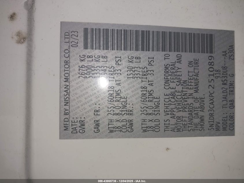 Колір БілийЦиліндри 6Привід Передній привідVIN 5N1DR3CAXPC251089Стан Заводиться та їде (перевірено)Ушкодження Град AutoRIA