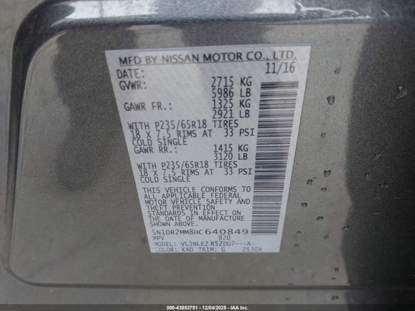 2017 NISSAN PATHFINDER 2017 року Бензин, 3.5, Повний привід, vin - 5N1DR2MM8HC640849 з США