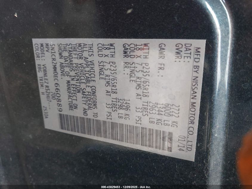 2014 NISSAN PATHFINDER 2014 року Гібрид, 2.5, Повний привід, vin - 5N1CR2MM0EC660889 з США
