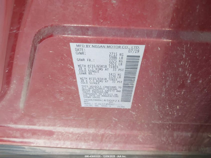 2019 NISSAN PATHFINDER 2019 року Бензин, 3.5, Повний привід, vin - 5N1DR2MM8KC650921 з США