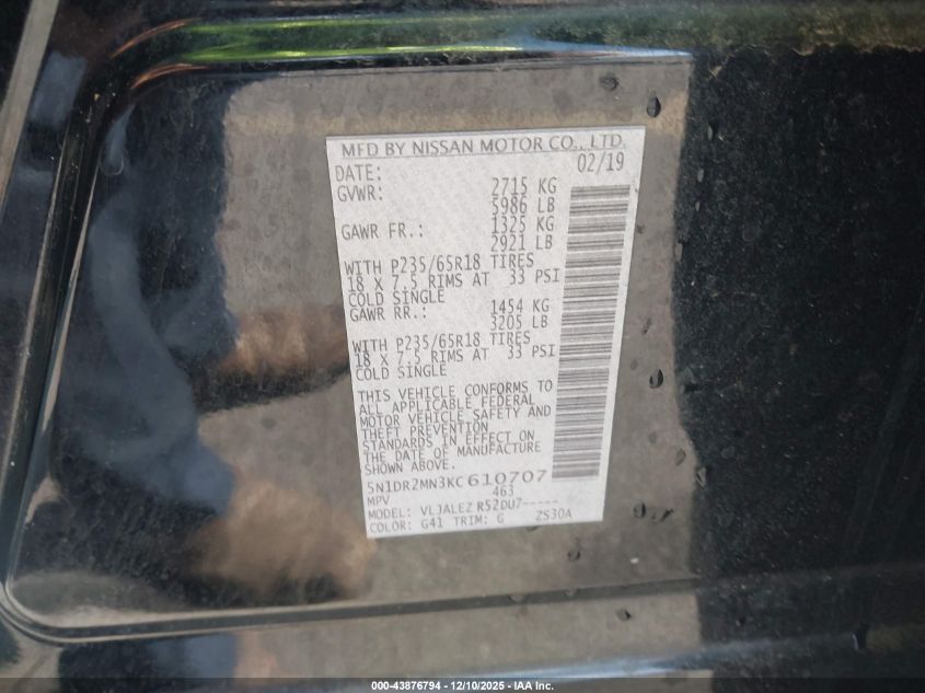 2019 NISSAN PATHFINDER 2019 року Бензин, 3.5, Передній привід, vin - 5N1DR2MN3KC610707 з США