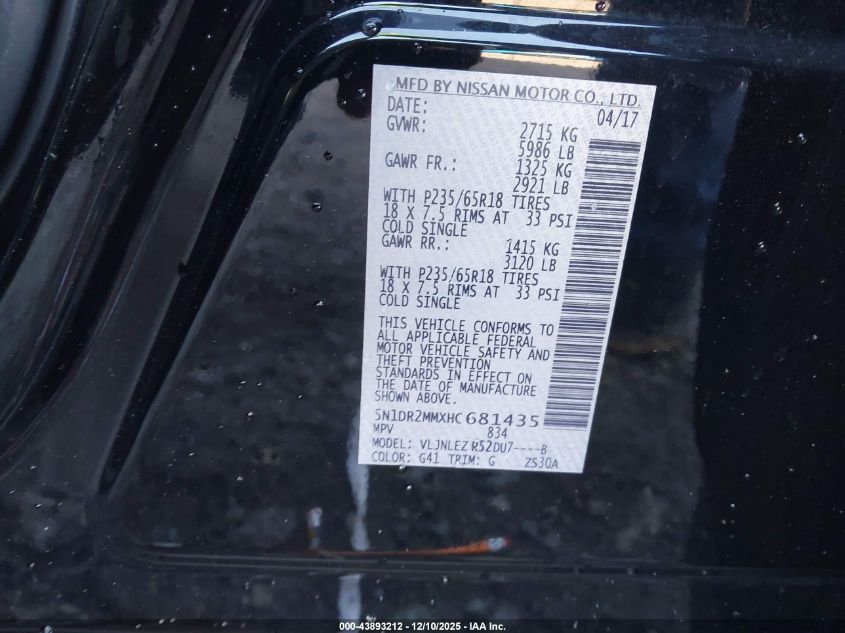 2017 NISSAN PATHFINDER 2017 року Бензин, 3.5, Повний привід, vin - 5N1DR2MMXHC681435 з США