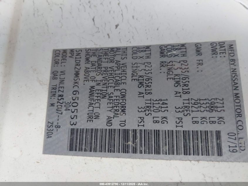 2019 NISSAN PATHFINDER 2019 року Бензин, 3.5, Повний привід, vin - 5N1DR2MM5KC650553 з США