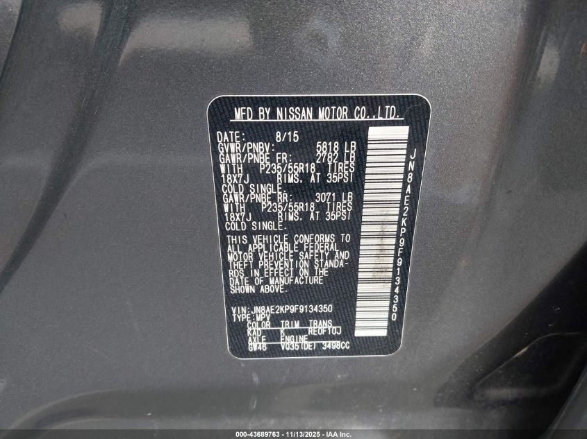 2015 NISSAN QUEST S