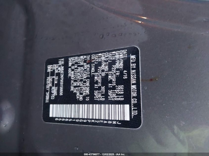 2016 NISSAN QUEST 2016 року Бензин, 3.5, Передній привід, vin - JN8AE2KP9G9156656 з США