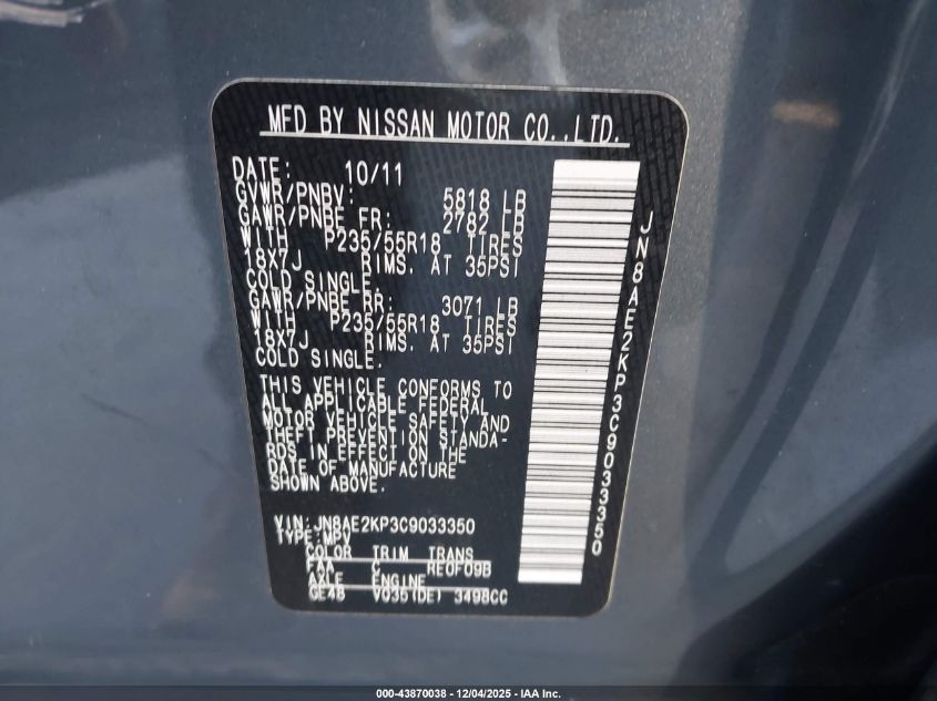 Колір СірийЦиліндри 6Привід Передній привідVIN JN8AE2KP3C9033350Стан Заводиться та їде (перевірено)Ушкодження Права сторона AutoRIA