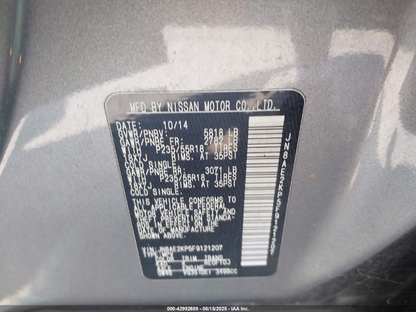 2015 NISSAN QUEST 2015 року Бензин, 3.5, Передній привід, vin - jn8ae2kp5f9121207 з США