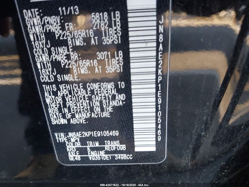 2014 NISSAN QUEST 2014 року Бензин, 3.5, Передній привід, vin - JN8AE2KP1E9105469 з США
