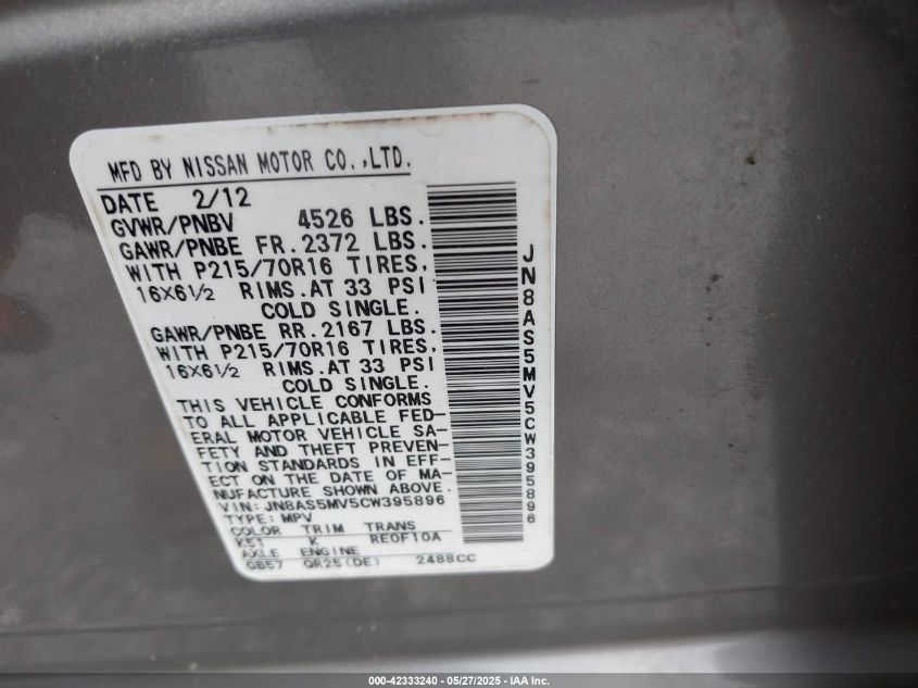 2012 NISSAN ROGUE S