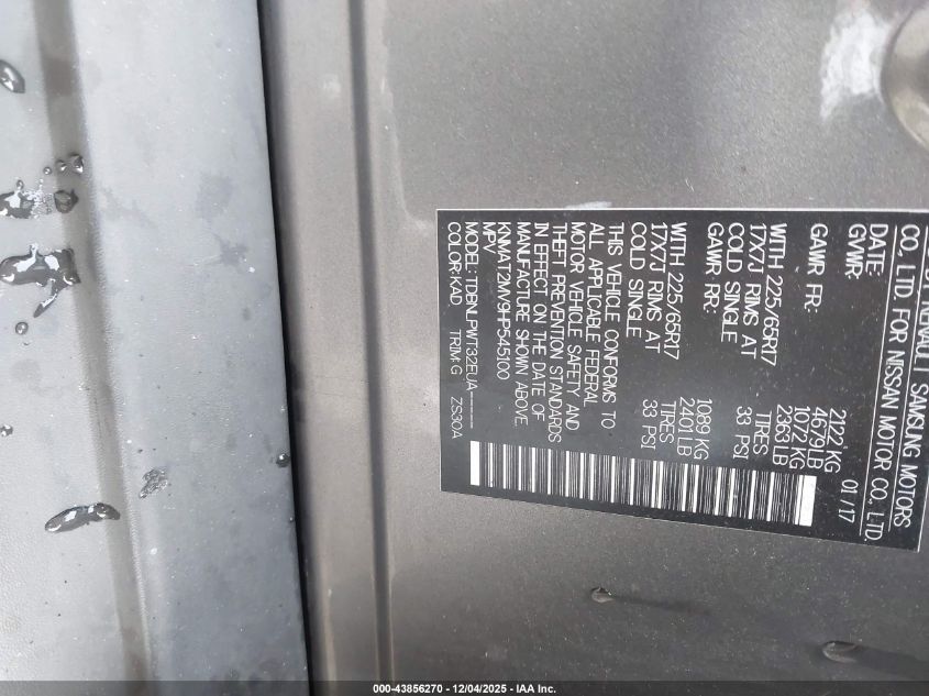 2017 NISSAN ROGUE 2017 року Бензин, 2.5, Повний привід, vin - KNMAT2MV9HP545100 з США