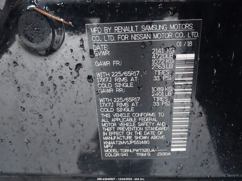 2018 NISSAN ROGUE 2018 року Бензин, 2.5, Повний привід, vin - KNMAT2MV1JP551480 з США