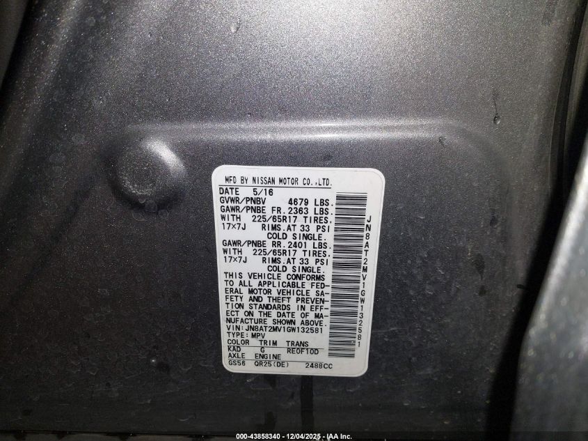 2016 NISSAN ROGUE 2016 року Бензин, 2.5, Повний привід, vin - JN8AT2MV1GW132581 з США