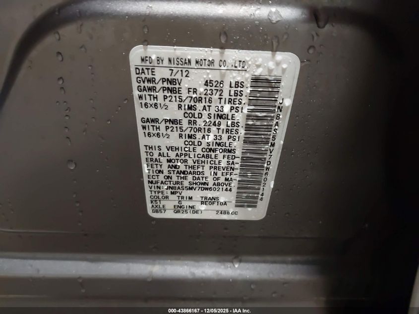 2013 NISSAN ROGUE 2013 року Бензин, 2.5, Повний привід, vin - JN8AS5MV7DW602144 з США