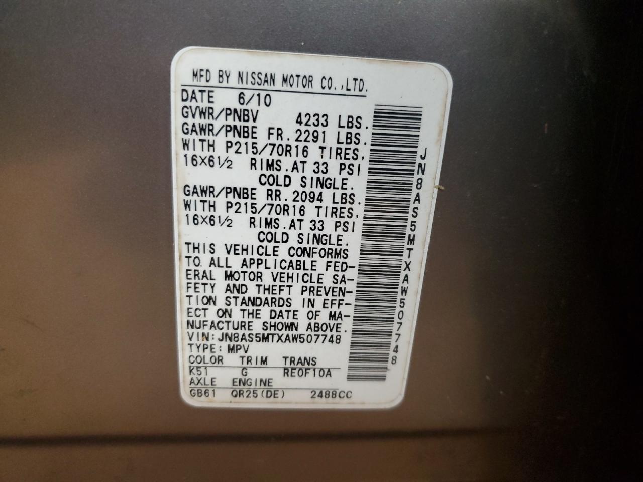2010 NISSAN ROGUE 2010 року Бензин, 2.5, , vin - JN8AS5MTXAW507748 з США