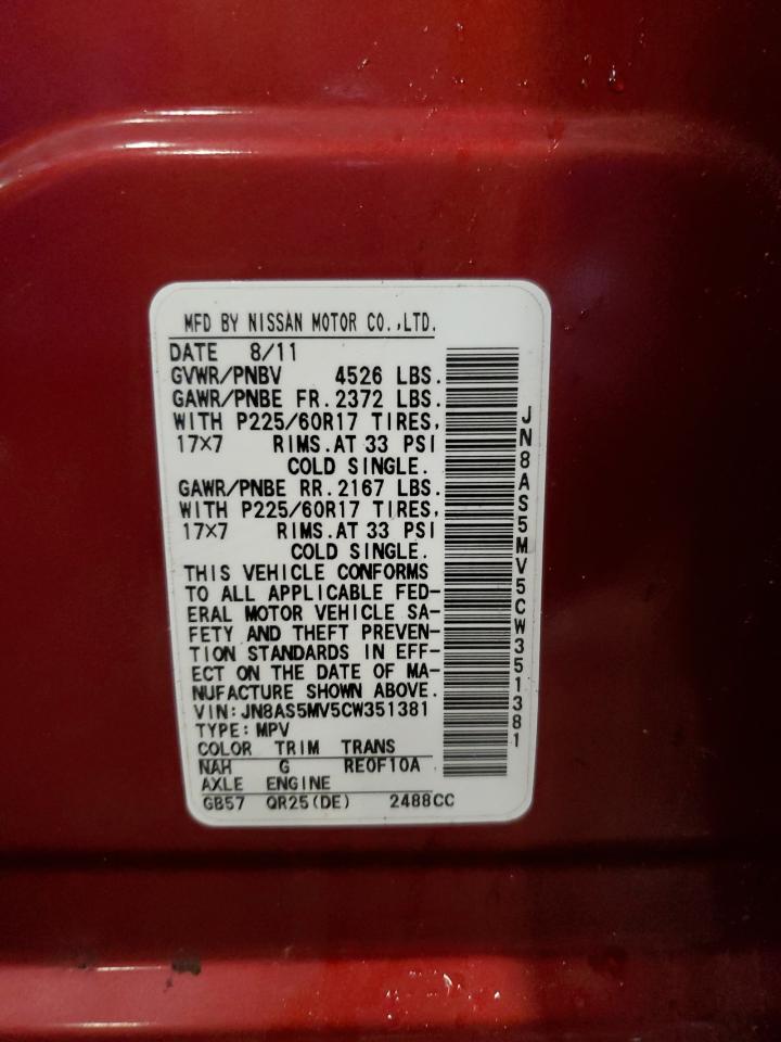2012 NISSAN ROGUE 2012 року Бензин, 2.5, Повний привід, vin - JN8AS5MV5CW351381 з США