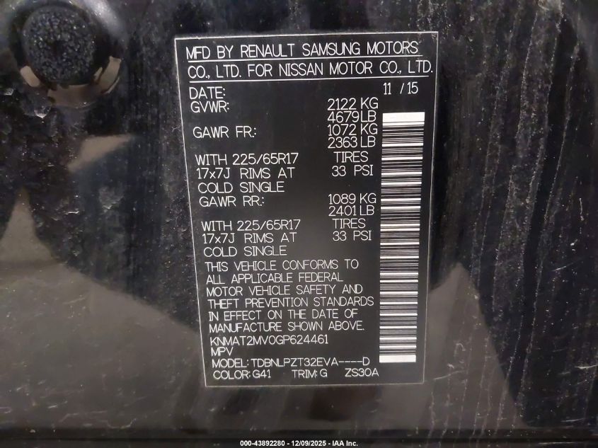2016 NISSAN ROGUE 2016 року Бензин, 2.5, Повний привід, vin - KNMAT2MV0GP624461 з США