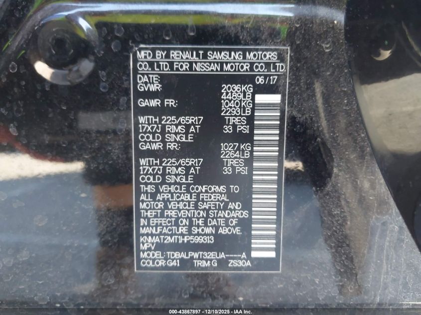 2017 NISSAN ROGUE 2017 року Бензин, 2.5, Передній привід, vin - KNMAT2MT1HP599313 з США