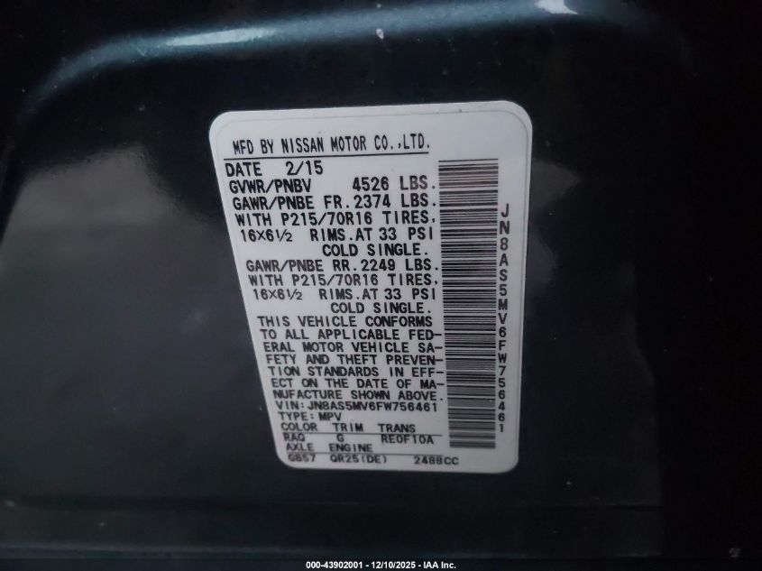 2015 NISSAN ROGUE 2015 року Бензин, 2.5, Повний привід, vin - JN8AS5MV6FW756461 з США