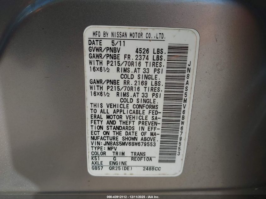 2011 NISSAN ROGUE 2011 року Бензин, 2.5, Повний привід, vin - JN8AS5MV6BW679553 з США