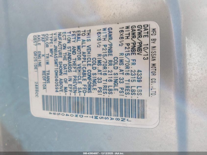 2013 NISSAN ROGUE 2013 року Бензин, 2.5, Передній привід, vin - JN8AS5MT1DW040594 з США