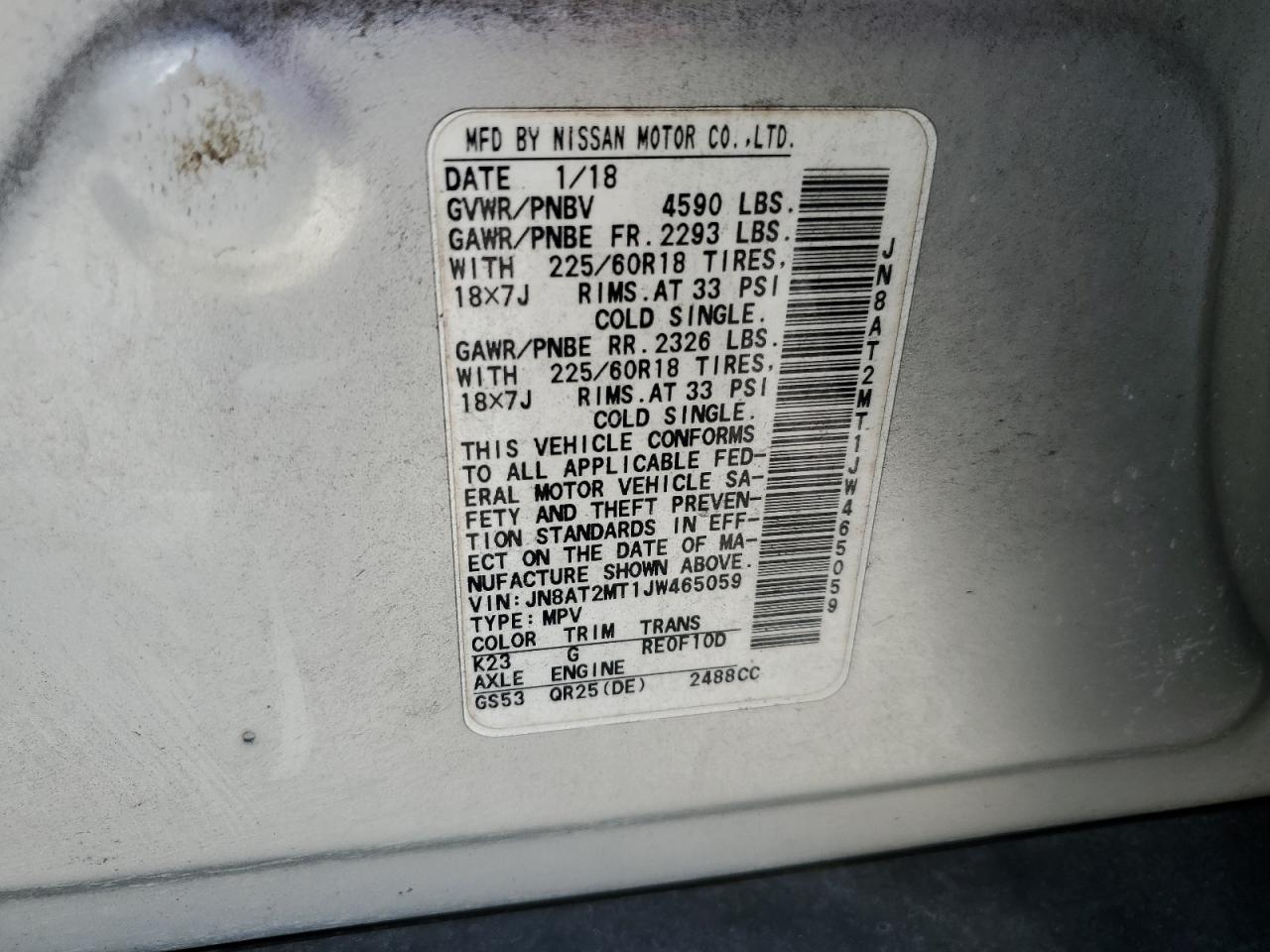 2018 NISSAN ROGUE 2018 року Бензин, 2.5, , vin - JN8AT2MT1JW465059 з США